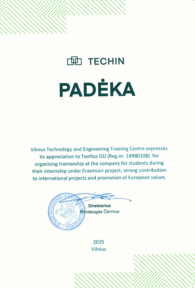 SIA “Tootlus” izveidoja motivēti cilvēki. Mūsu kvalitatīvā darba pamatā ir augsti kvalificētu darbinieku ilggadējā pieredze.